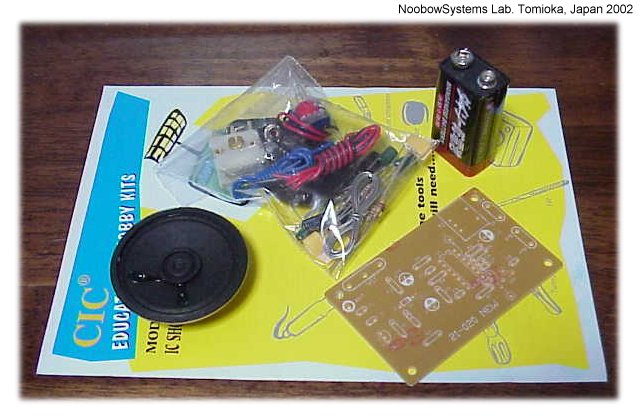 失敗しないかなあ? 届いたキットは、ホビーショップで吊るして展示できるように考えられた透明ビニールバッグに入っています。 内容は1枚ものの組み立てマニュアル、プリント基板それにスピーカを含む必要な部品。 マニュアルには CIC(R) Education & Hobby Kits とあるだけで他にメーカーを知る手がかりはなく、またマニュアルの片隅に Made in Taiwan R.O.C. と青インクのゴム印が押されています。 そこでウエブをサーチしてみると、これは台湾の CIC Components Ind. Co. Ltd. の製品であることがわかりました。 同社のウェブサイトによれば同社は1980年にスイッチ製造工場としてスタートし、1994年に教育用キットの販売を開始した、とあります。従業員数は37名。 同社のサイトは輸出企業らしくホームページを含めてすべて英語で書かれています。 サイトにはキットのカタログがあり、楽しそうなロボット キットやエレクトロニクスホビー キットが多数掲載されています。 が、同社は直販は行っていないようです。 2002-05-11 CTC 21-020 入荷 |