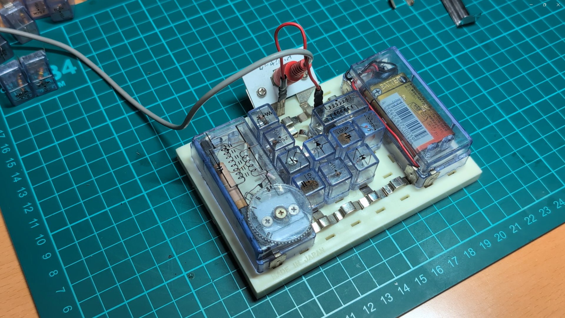 ボード上に006P電池が入った電池ブロックを取りつけることを前提にしているため、
