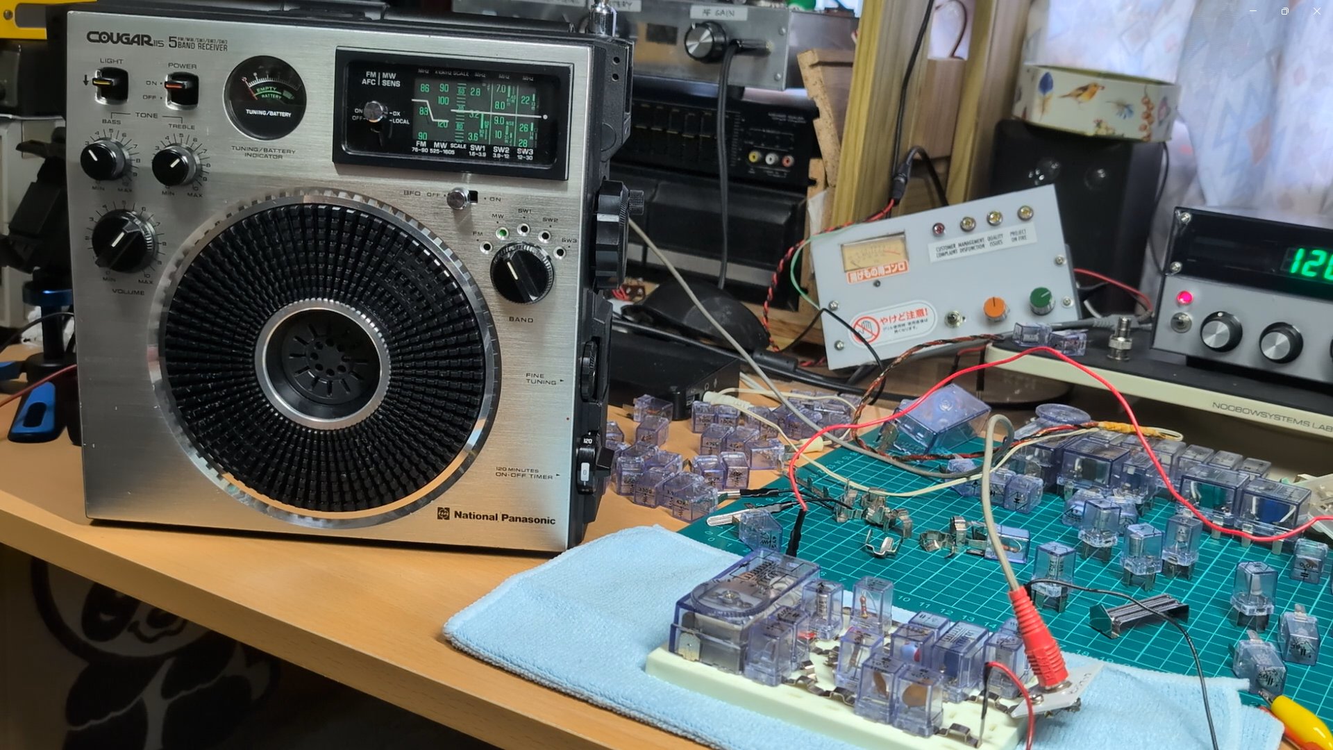 結構いい感じで聞こえています。 変調を深くできない / アンテナ負荷で周波数が動く / AM変調だけでなくFM変調もかかっているのでラジオのダイヤルをぴったりに合わせると音質は悪化する / スプリアス出まくり・・・ といった具合で、1石自励AM送信機ではまあこんなものです。 が、 RamseyのAMトランスミッタキットAM-1 よりもずっといい感じで動作しています。 テスト音源はまたまた彩音 〜xi-on〜 さんのアルバム "Groovy Moon" からトラック1 「宇宙巫女現る」 (原曲:「宇宙巫女現る」)。 2025-09-06 1石AMトランスミッタ |