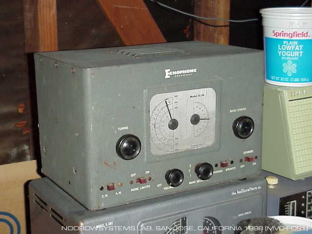 全般的な清掃・調整が必要なようです。 電源平滑用の電解キャパシタはやはり前のオーナーにより最近のものに交換されており、 とりあえず動作します。 EC-1Aの背面パネルはベニア板製ですがEC-1Bは黒色のボール紙製。 このEC-1Bのボール紙パネルはすでによれよれになってしまっています。 1998-10-11 EC-1B 初期チェック |