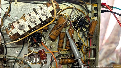 調子よく鳴っているEC-1Bですが、シャシー下の部品をあちこち綿棒でつんつんしていたら、