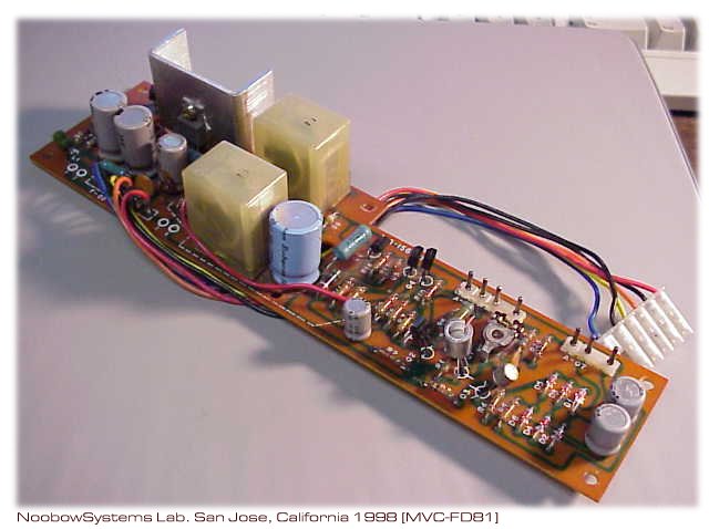 変動幅は±60mVほど。 交換した4.7μFはおそらく正常でしょうから、このボード上の他の電解キャパシタを疑います。 10μFがツエナーダイオードのノイズ吸収用に、 また100μFがシリーズドロップトランジスタの上流と下流の間に入っています。 2つとも無条件に交換してしまうことにしました。 外したキャパシタの外観を見ると、日通工製の100μFに電解液漏れの痕がみられ、 ベースのラバーシールもカチカチ。 P-10型デジタルテスタで容量を測ると、全く応答がありません。 これが原因だったのでしょう。 2つとも、高信頼性105℃仕様の電解キャパシタに交換しました。 おお!! ハムはすっきり消えました。 DC40V電源ラインのリップル分は1mVp-p以下。 ただし不規則な上下動は残っています。 このラインにリップルがあるとハムになるので、この上下動はやはり20dBアンプの動作に影響しているはず。 その周波数は数Hzですので音声出力には現れてこないだけなのでしょう。 変動の原因を調べようかとも思いましたが、 再生音にはまったく問題がないのでこのままにしました。 スピーカセレクタの接触不良はきれいには直らず、 ときたま接触不良が発生します。 トラブルが続くなら直結にでもしちゃおうかな。 Noobow9100コンピュータのラックに収めて、 とりあえず作業終了。 しばらくはいい音が楽しめそう。 2008-09-22 ハム修理 2回目 |
