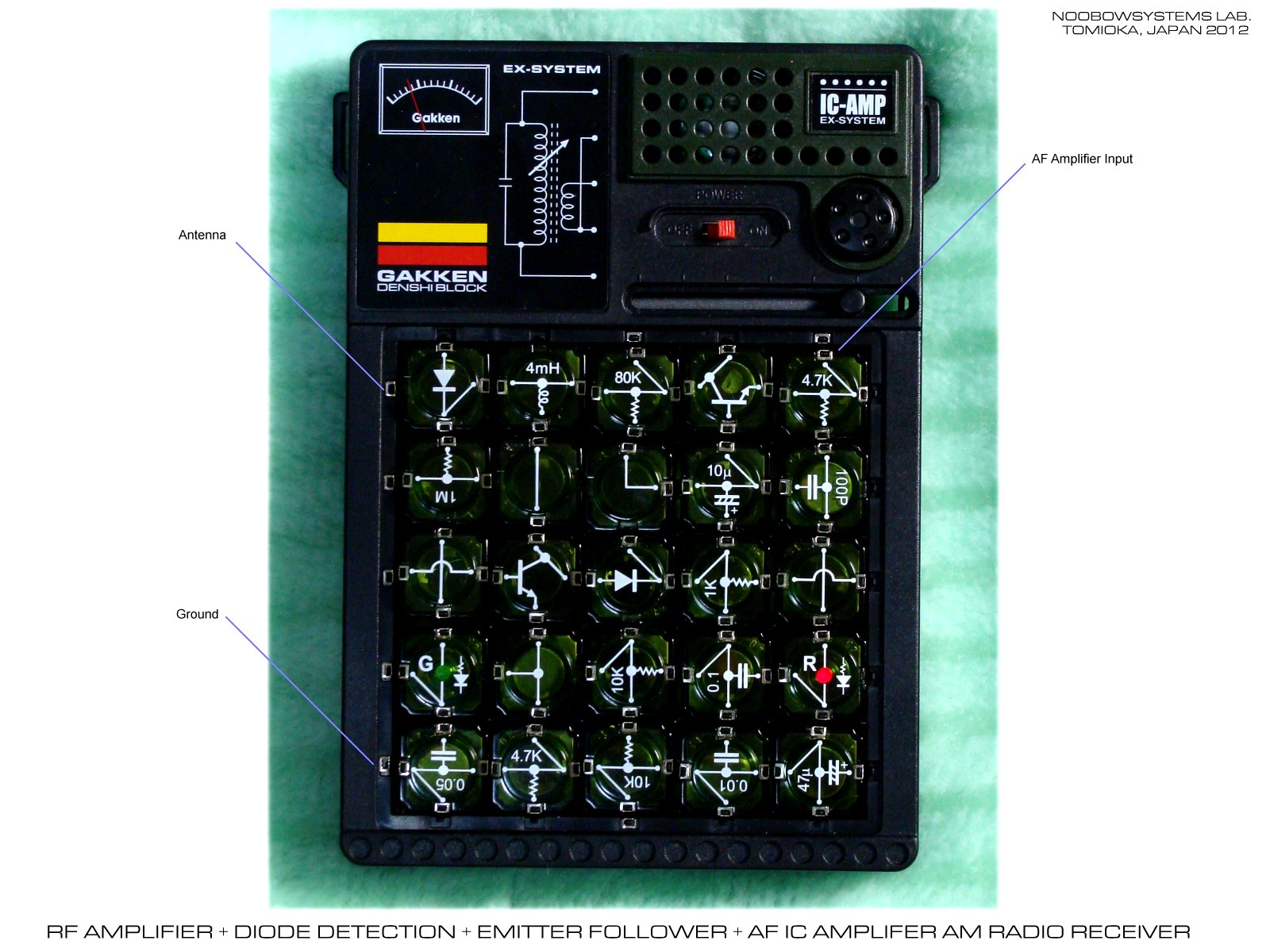 電子ブロックではどこまでいけるか試してみます。 AM電話送信機をさがしてみると、