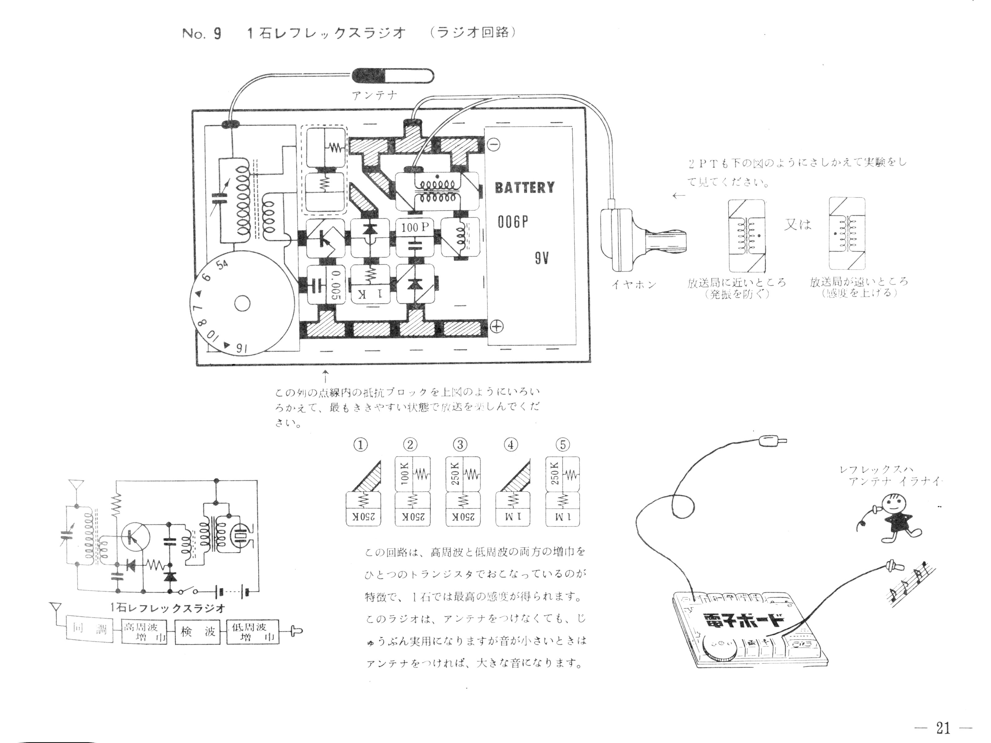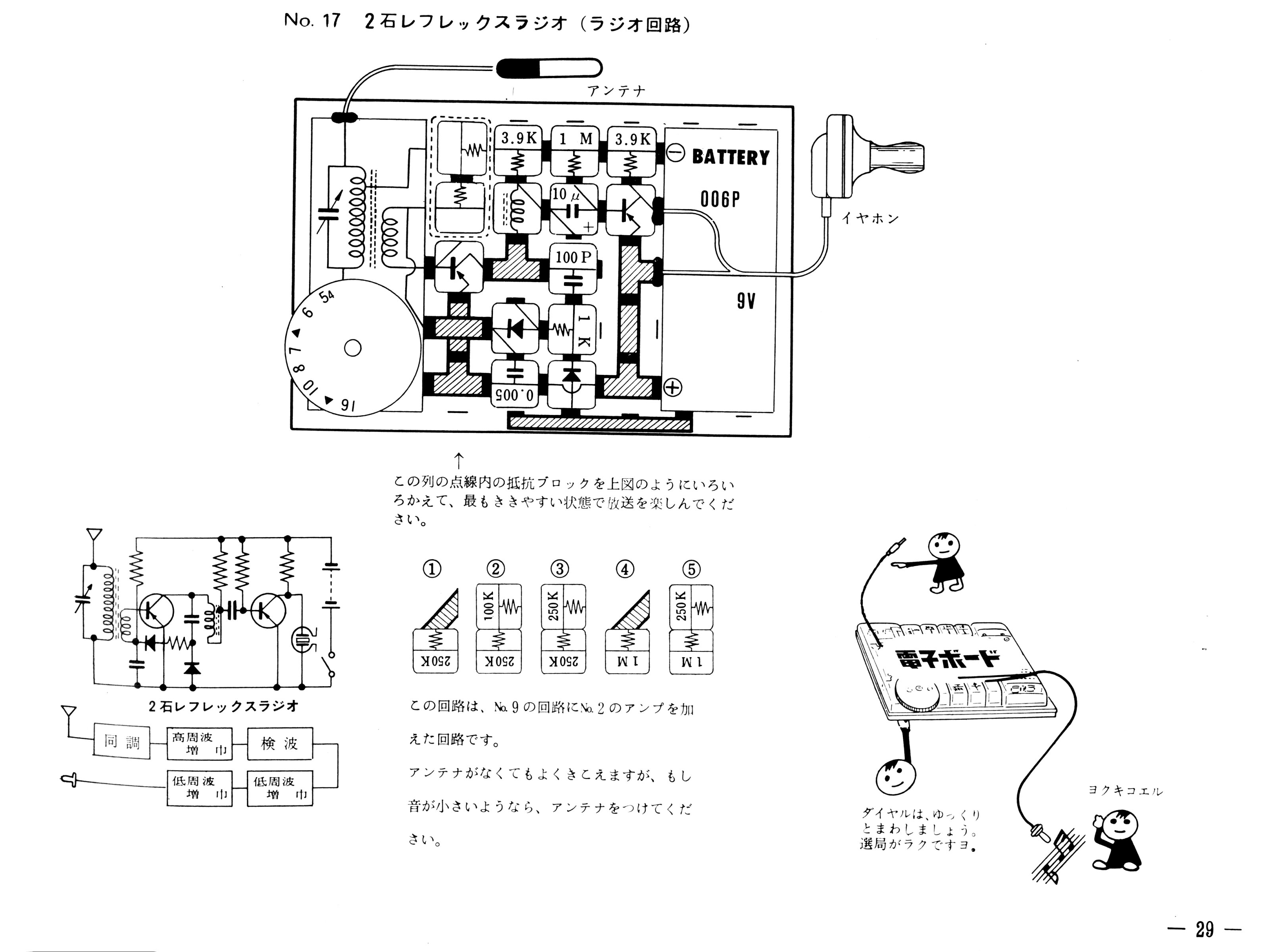 電子ボード1枚でできる「初歩実験」には、スピーカを鳴らせるラジオは紹介されていません。