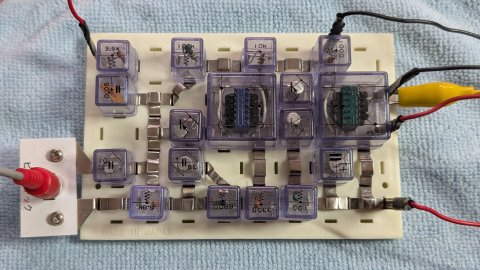 ちいさなトランジスタにもかかわらず室内で聞くのに十分すぎる音量。 最初は安物ポケットラジオのような音質でしたが、 マニュアルでは触れていないNFBを加えて音質を改善することができました。 とはいえクロスオーバー歪低減の工夫は入っていませんし、 なにしろ出力トランスが小さいから、 音質はがんばってもこんなものですね。 音楽を堪能できるほどのいい音とまでは行きませんが、 ポケットラジオよりもずっと優れた音質になりました。 テスト音源はACCORD ON CODESさんのアルバム "Live 2018" からトラック12 「Izanagi Mystery」(原曲:「イザナギオブジェクト」)。 ライブならではのクールでホットなプレイです。 2025-09-06 B級プッシュプルオーディオメインアンプ |