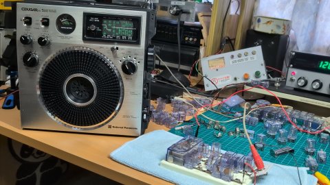 結構いい感じで聞こえています。 変調を深くできない / アンテナ負荷で周波数が動く / AM変調だけでなくFM変調もかかっているのでラジオのダイヤルをぴったりに合わせると音質は悪化する / スプリアス出まくり・・・ といった具合で、1石自励AM送信機ではまあこんなものです。 が、 RamseyのAMトランスミッタキットAM-1 よりもずっといい感じで動作しています。 テスト音源はまたまた彩音 〜xi-on〜 さんのアルバム "Groovy Moon" からトラック1 「宇宙巫女現る」 (原曲:「宇宙巫女現る」)。 2025-09-06 1石AMトランスミッタ |