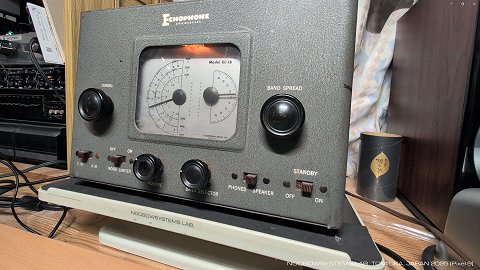 そうではなくてこの受信機はイメージとゴーストがかなり酷いようです。 これはおそらく、実際に観察はしていないのですが、 局発の波形が歪んでいて高調波や低調波が含まれているのでしょうね。 ほとんど同じ設計のEC-1AやS-41Gに比べてもこの傾向は目立つので、 局発周りの点検をしたら異常が見つかるのかもしれません。 いまのところこのEC-1Bは「当時物のコンポーネントで動作している」のが見どころと勝手に思っているので深くは追及せず、 次の輪廻の課題にとっておきましょう。 |