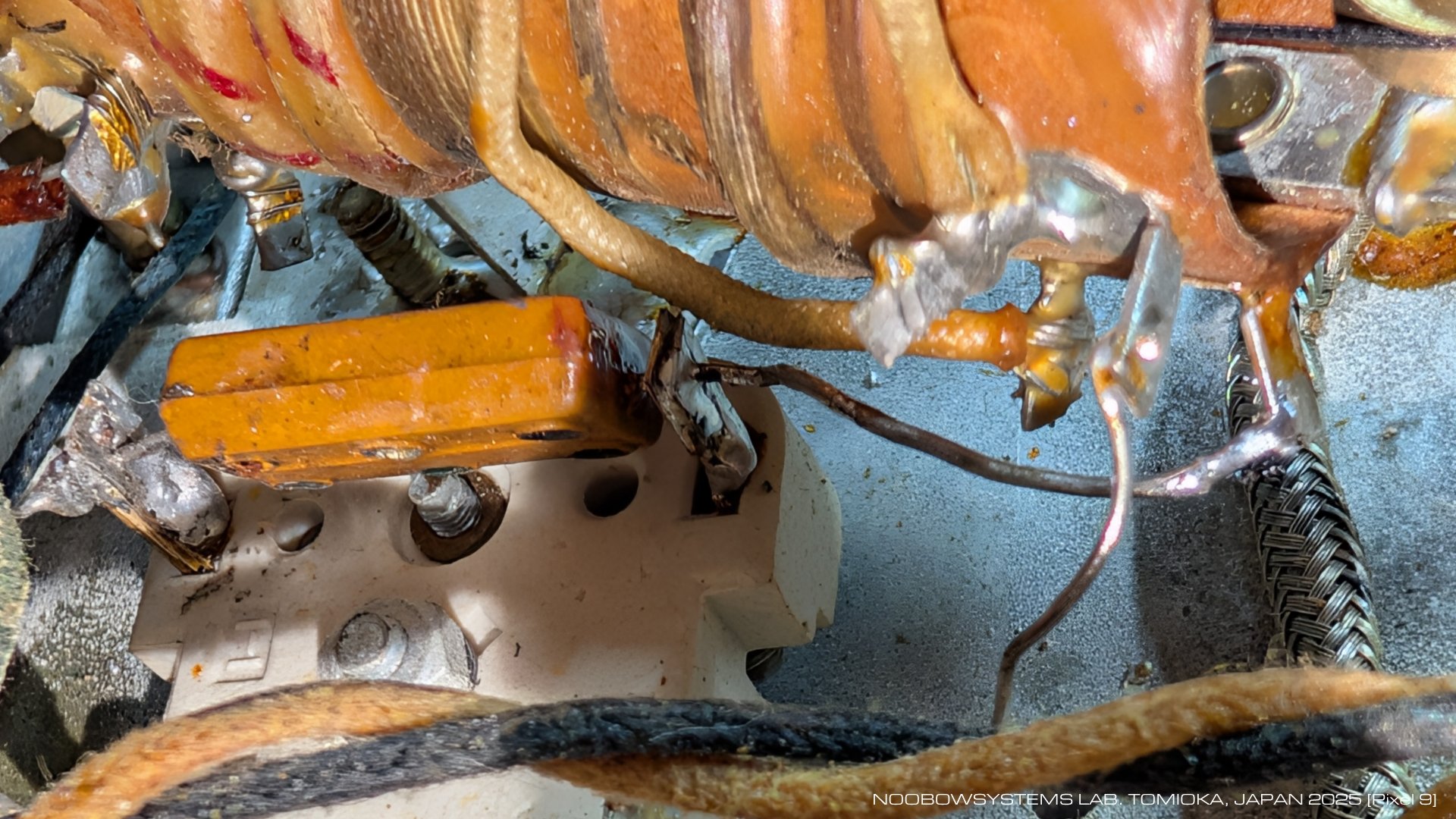 調子よく鳴っているEC-1Bですが、シャシー下の部品をあちこち綿棒でつんつんしていたら、