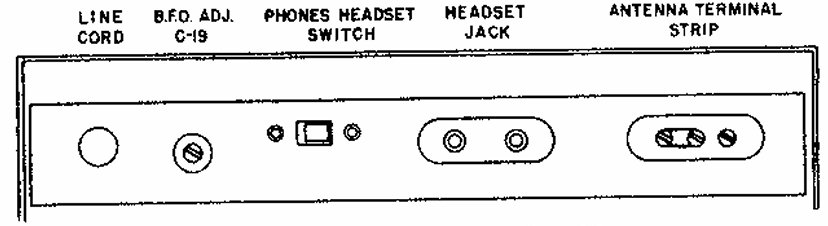 今回EC-1Bのサービスマニュアルを読んでその理由がわかりました。 手元には2つのEC-1Bサービスマニュアルがあります。 ひとつはJohn F. Riderの回路図で、December 1945の文字が見えるバージョン。 もうひとつはおそらくハリクラフターズ社発行のサービスデータ。 こちらには March 1946の文字が見えます。 で、1945年12月のJ.F.Riderには、リアエプロンに PHONE-SPEAKER切り替えスイッチが描かれています。 と同時に、フロントパネルには2つしかスイッチがなく、 C.W.-A.M. と BFO ON-OFFだけ。 NOISE LIMITERスイッチはありません。 回路図を見るとたしかにノイズリミッタの結線はなく、 BFO管の12SQ7のダイオードプレートには何もつながっていません。 |