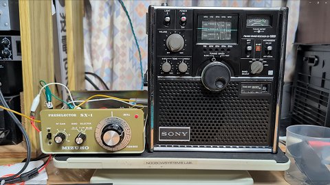 これは7.025MHz±3kHzの40メーターバンドのアマチュア局のイメージ混信です。 6115 + 910 = 7025   このケースもSX-1を6MHzに合わせれば7MHzのアマチュア無線の信号はきれいに落とせます。   しかし、 8.828MHzのVOLMETを聞きたいのに9.740MHzのRTI 台湾国際放送のイメージが8.830MHzに入ってきてしまう問題。 これは厄介です。 台湾国際放送の信号はあまりに強力で、 SX-1では歯が立ちません。   右の動画では8.828MHzにシグナルジェネレータで断続信号を出しています。 これが聞きたい信号を模擬していますが、 RTIを回避することができずにいます。 2026-01-15 |