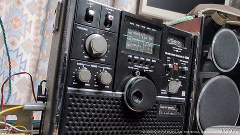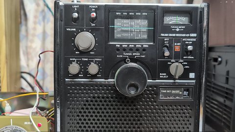 リキャップした方がいいのかもしれません。 5800の電解キャパシタでFMのときだけ使われるのは、レシオ検波のC78 10uFだけ。 まずは狙いをつけてこれを交換してみようか。 あとはFM局発の電源電圧フィルタ C4 100uFの可能性もありますね。 これが完全に容量抜けになれば、 スピーカの音声出力波形に応じてわずかにFM局発のコレクタ電圧が変動し、 局発周波数が変動して、結果としてFM中間周波にさらに自分でFMをかけてしまう形となってしまうはずです。 2026-01-17 でもちょっと待って、 いままではイヤホンジャックから音声信号を取り出して外部アンプとスピーカで聴いていたけれど、 REC OUTから取り出した場合は普通の音質だぞ? これはオーディオアンプ部で音質劣化が起きているのかも。 右の動画はREC OUT取り出しで外部パワーアンプ&ブックシェルフスピーカ使用。 ミズホSX-1でイメージ周波数側のノイズも低減できていて、いい音で鳴っています。 さらに、外部アンプにつなぐときはREC OUT端子よりもMPX OUTから検波出力を取り出すのがさらに好都合ですね。 これは ICF-1100D も同じ。 2026-01-18 |