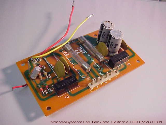 変動幅は±60mVほど。 交換した4.7μFはおそらく正常でしょうから、このボード上の他の電解キャパシタを疑います。 10μFがツエナーダイオードのノイズ吸収用に、 また100μFがシリーズドロップトランジスタの上流と下流の間に入っています。 2つとも無条件に交換してしまうことにしました。 外したキャパシタの外観を見ると、日通工製の100μFに電解液漏れの痕がみられ、 ベースのラバーシールもカチカチ。 P-10型デジタルテスタで容量を測ると、全く応答がありません。 これが原因だったのでしょう。 2つとも、高信頼性105℃仕様の電解キャパシタに交換しました。 おお!! ハムはすっきり消えました。 DC40V電源ラインのリップル分は1mVp-p以下。 ただし不規則な上下動は残っています。 このラインにリップルがあるとハムになるので、この上下動はやはり20dBアンプの動作に影響しているはず。 その周波数は数Hzですので音声出力には現れてこないだけなのでしょう。 変動の原因を調べようかとも思いましたが、 再生音にはまったく問題がないのでこのままにしました。 スピーカセレクタの接触不良はきれいには直らず、 ときたま接触不良が発生します。 トラブルが続くなら直結にでもしちゃおうかな。 Noobow9100コンピュータのラックに収めて、 とりあえず作業終了。 しばらくはいい音が楽しめそう。 2008-09-22 ハム修理 2回目 |